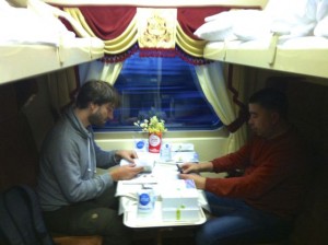 Hij gaf ons een gouden tip over een voetbalmatch in Moskou maar we hebben alle communicatiemedia moeten bovenhalen (ik mijn boek, hij zijn translator (smartphone)).
